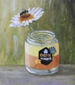 De vorm van een vaas of fles, de kleur groen van glas, het blauw van een vaas of het rood van besjes, zijn steeds weer inspiratiemomenten.